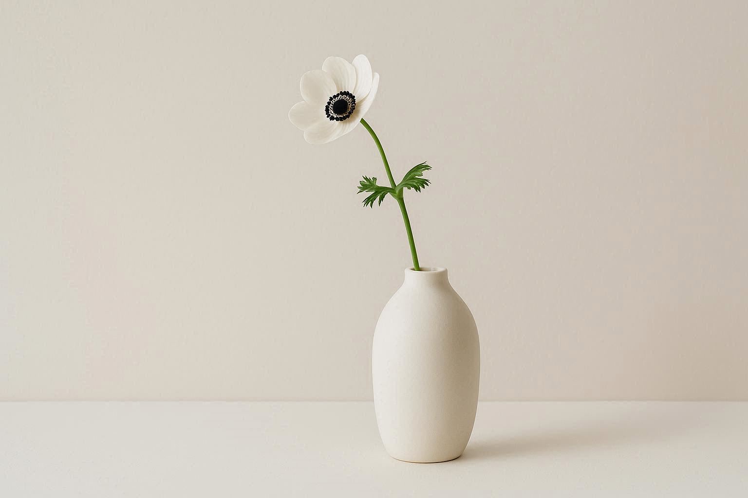 Crafted from high-fired, fine ceramic, this vase embodies minimalist elegance with its pure white, matte glaze and clean, cylindrical silhouette. Standing approximately 8 inches tall with a narrow 2.5-inch opening, it is expertly proportioned to beautifully display a single stem flower, such as a rose, tulip, or dried pampas grass. The smooth, uniform finish highlights the natural beauty of the stem without visual distraction.