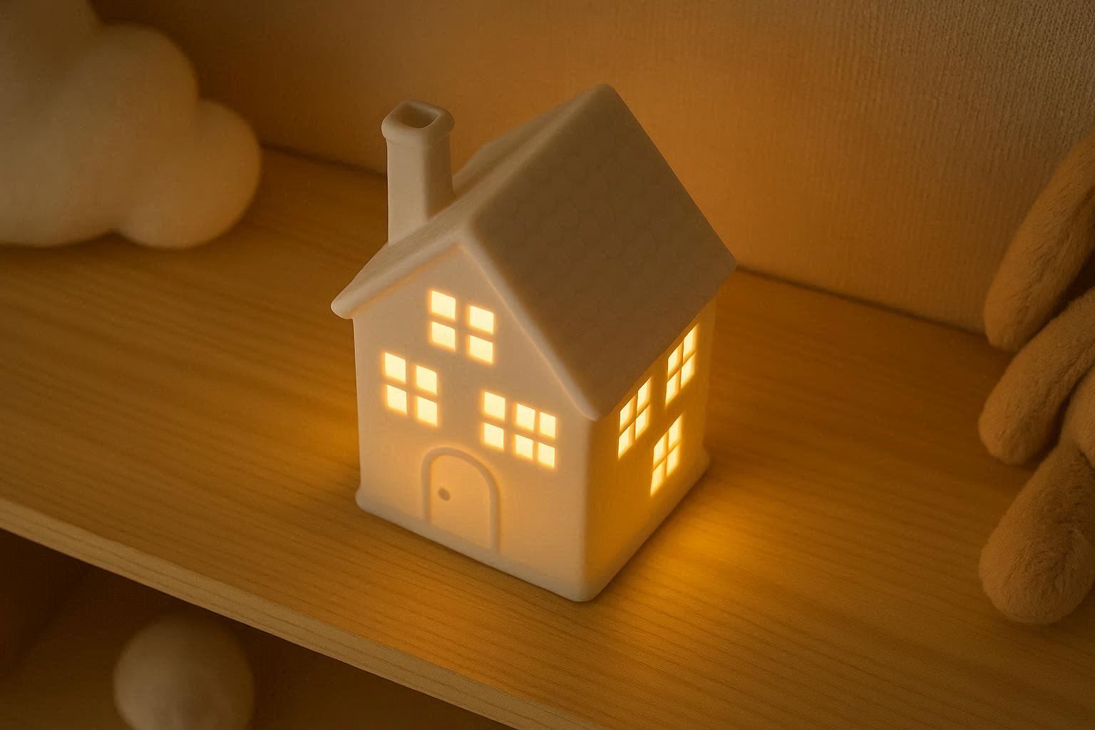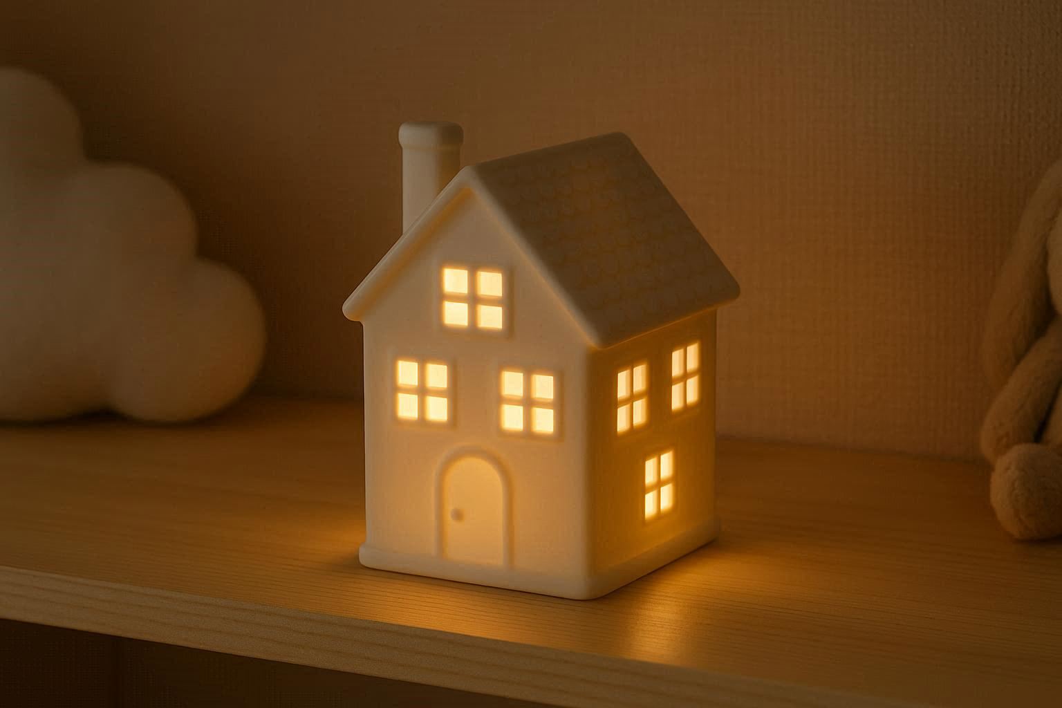 Small Porcelain House Night Light Decor for Nursery Shelf