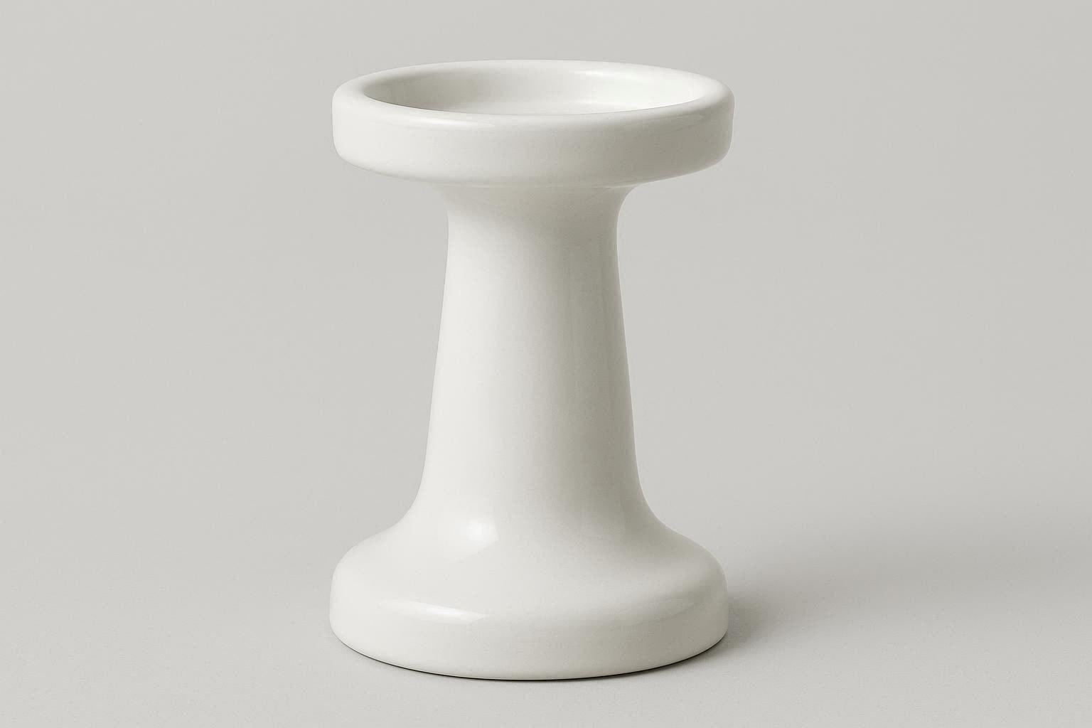 Crafted from fine, vitrified porcelain, this holder exemplifies minimalist purity with its flawless, bright white glossy glaze and a classic, slightly tapered cylindrical form. The surface is perfectly smooth and non-porous, making it exceptionally easy to clean. Its proportions are balanced and serene, typically standing 5 inches tall with a 4-inch diameter, providing a stable base for a medium-sized pillar candle.